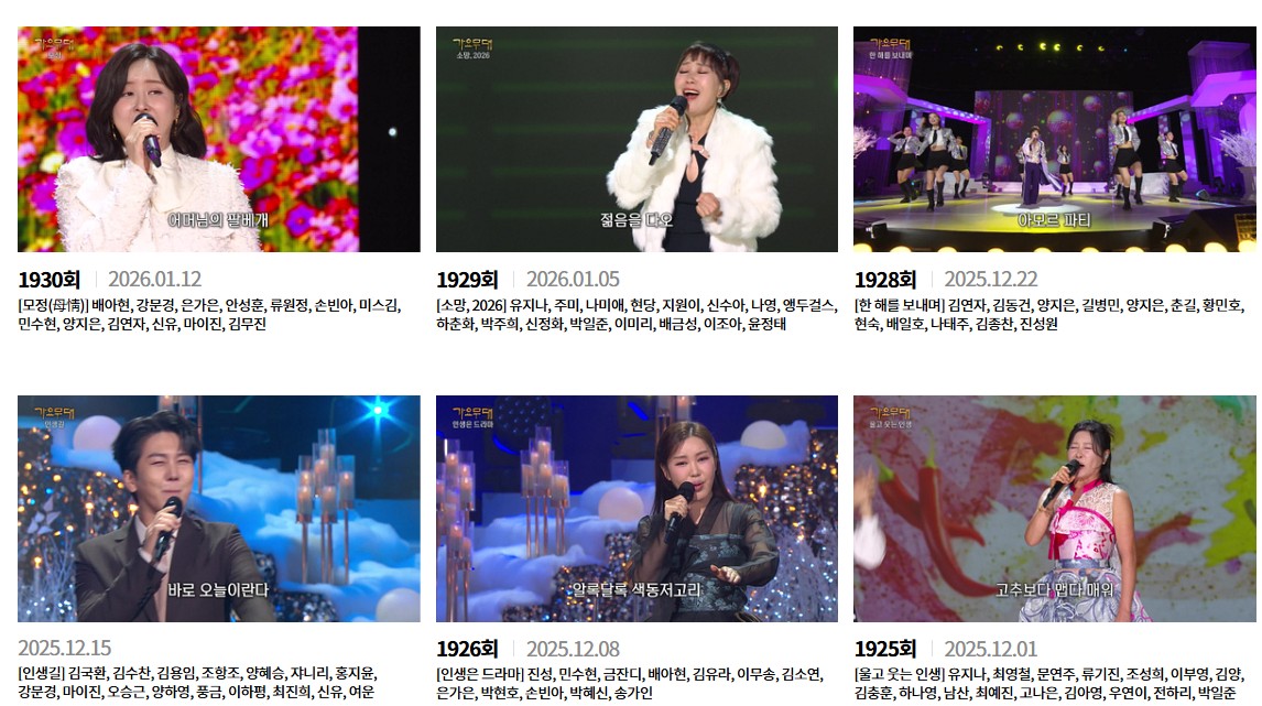 🔎 가요무대 출연진 한눈에 보기