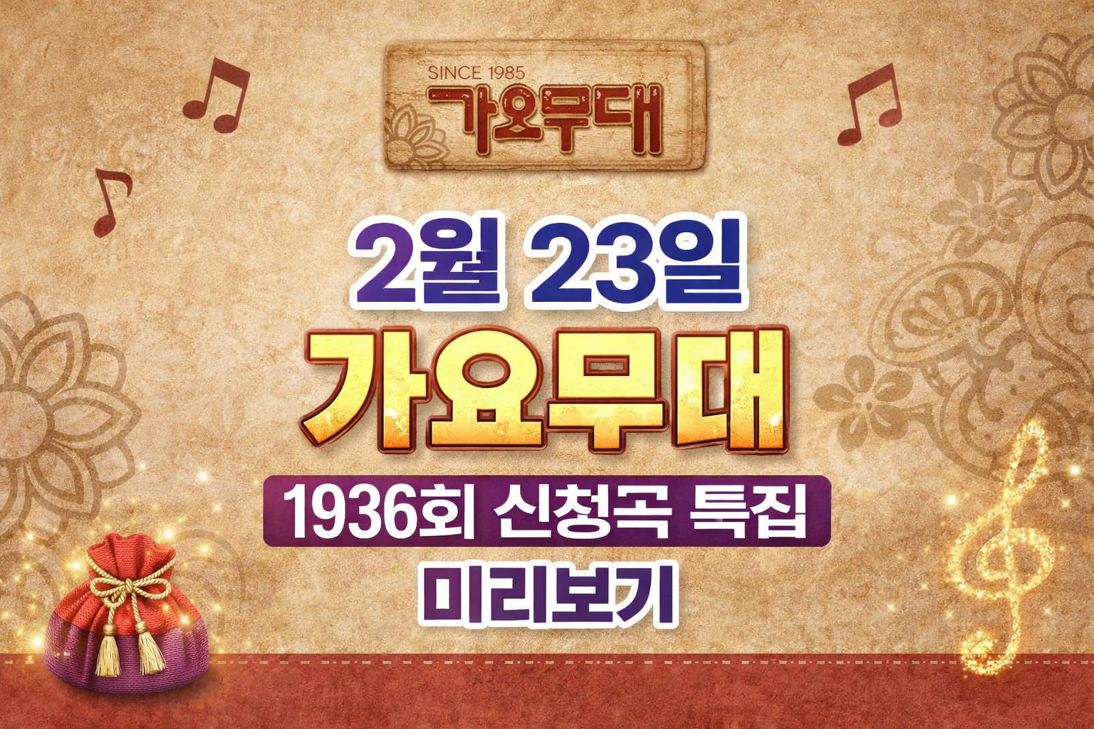 2월 23일 가요무대가 ‘2월 신청곡’ 특집으로 방송됩니다.
